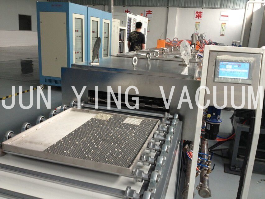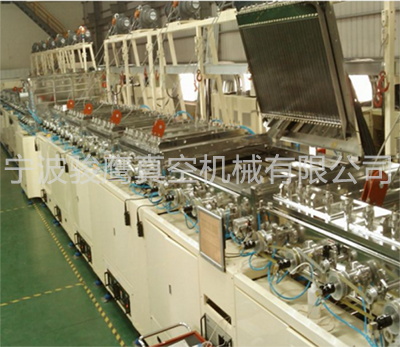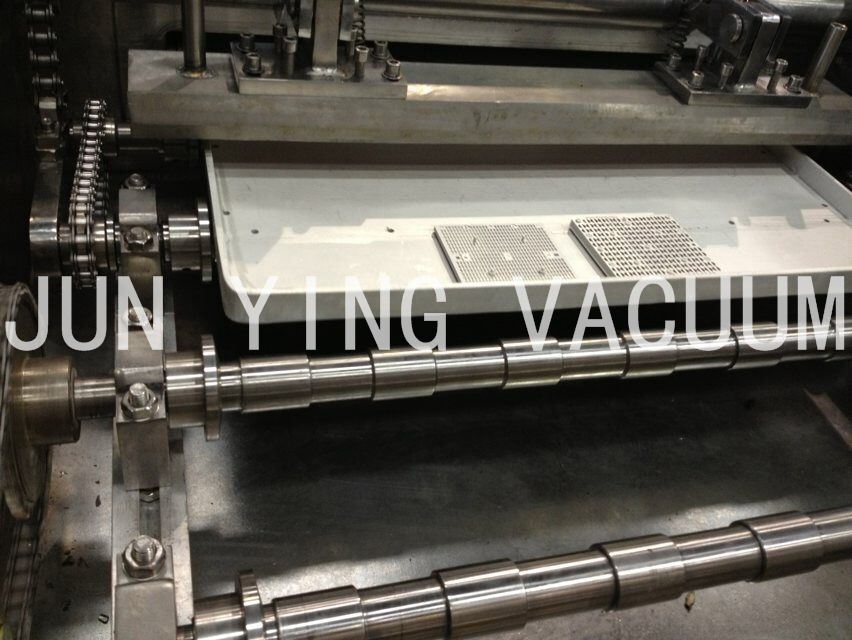 2.進(jìn)料區(qū):可放置625mmχ505 mm料盤二十盤,一盤Max 35個(gè)治具,一次入料Max可達(dá)700個(gè)治具,自動(dòng)送料盤結(jié)構(gòu)配置一個(gè)KY- 400高真空分子泵或10 FCryo pump及採用Rotary pump + Booster之低真空pump組合,抽氣速率可達(dá)10000 L/hr